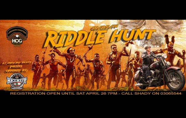 H.O.G.® Lebanon Chapter is proud to announce the 1st Riddle Hunt on a Harley® in the Middle East! This is an event not to miss!! You shall remember this one for many years to come!